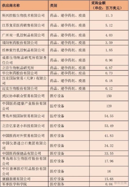 聯(lián)合國疫情相關(guān)采購供應(yīng)商